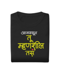 Aaj Pasun Tu Mhanshil Tas funny marathi printed t-shirt. Perfect for normal occasion, our printed t-shirts are a must-have for every wardrobe.
