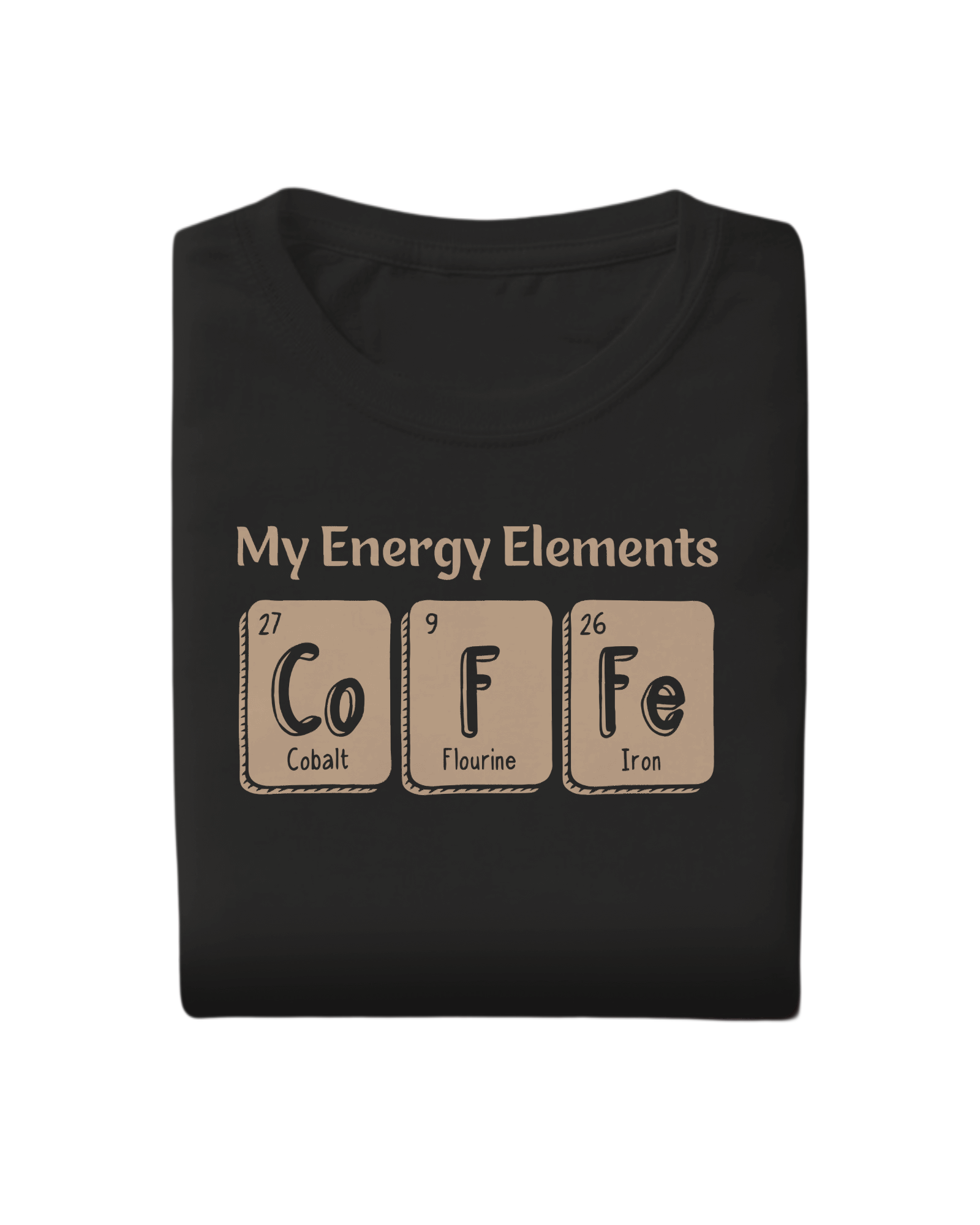 The “My Energy Elements – Coffee” T-shirt is a clever blend of caffeine love and geeky humor. Designed like periodic table elements, Co–F–Fe comes together to spell Coffee—because that’s the real source of energy.